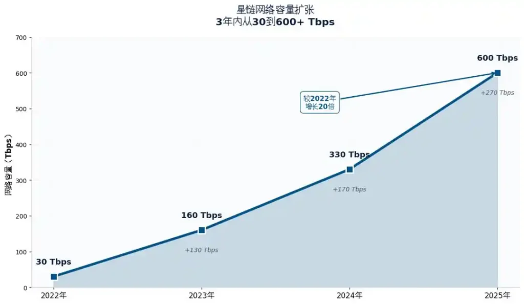 这个数字意味着什么?相当于星链的网络容量在一年内几乎翻了一番,新增的270 Tbps容量,足以支撑数百万用户同时流畅观看4K高清视频——要知道,这是卫星互联网领域前所未有的突破,放在几年前,甚至被认为是“不可能完成的目标”。